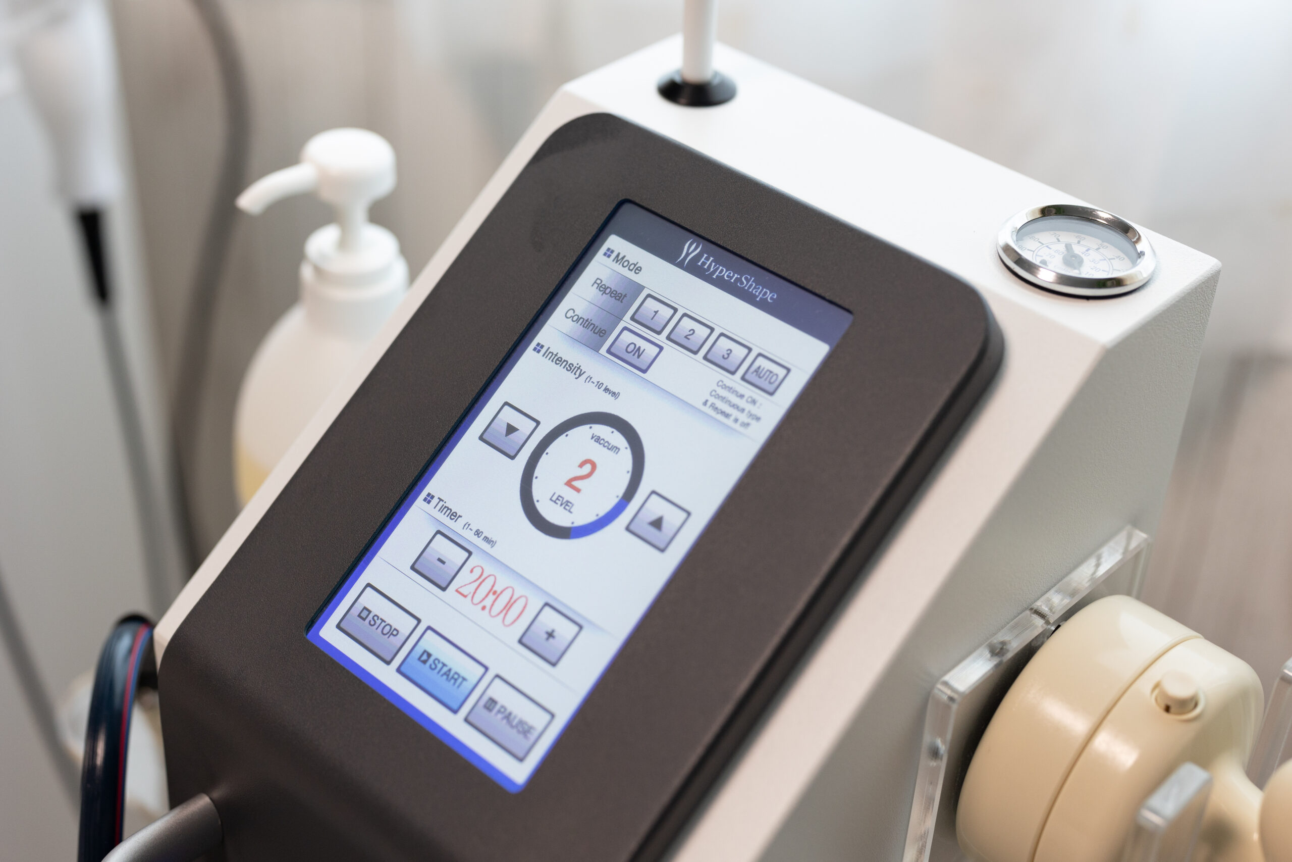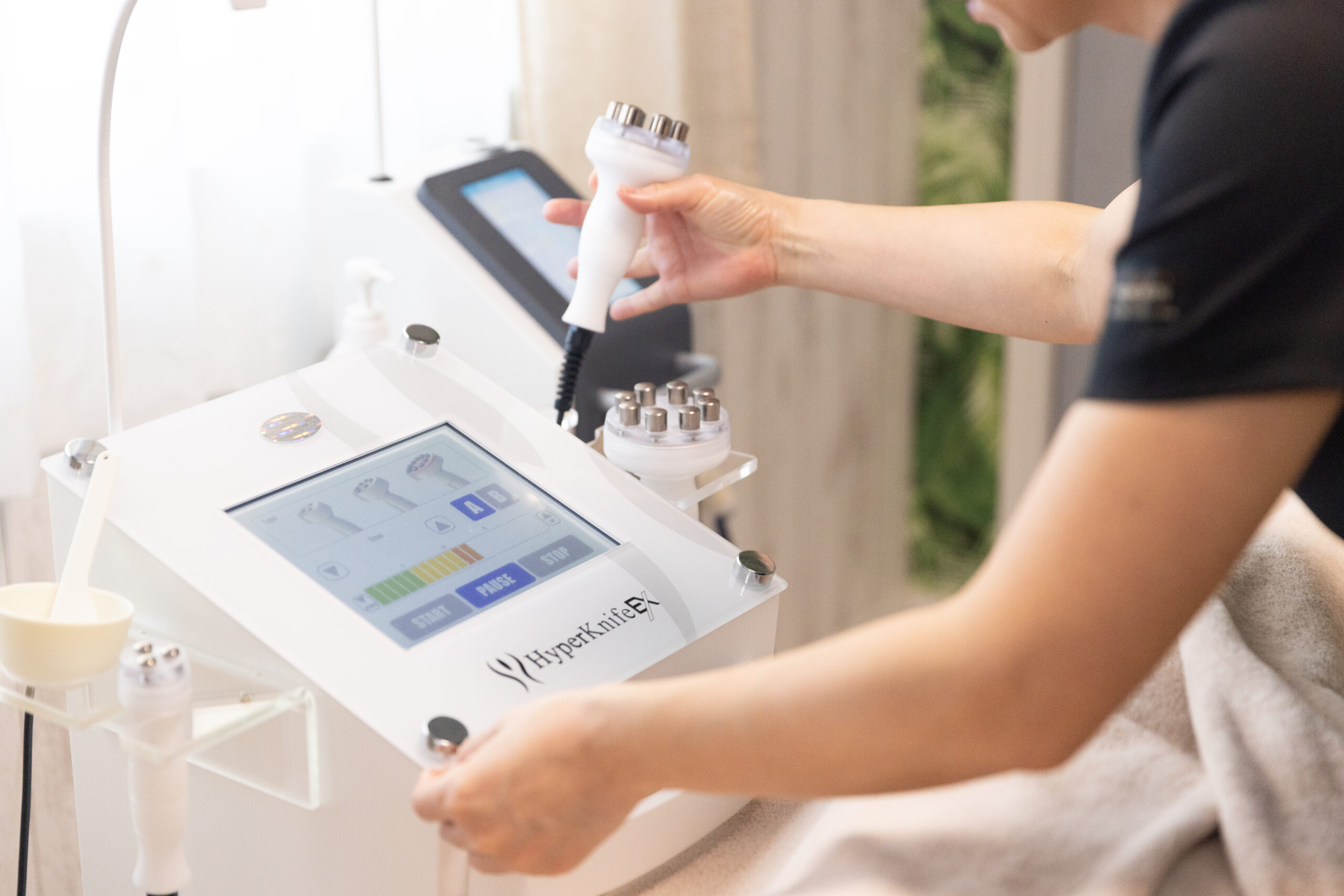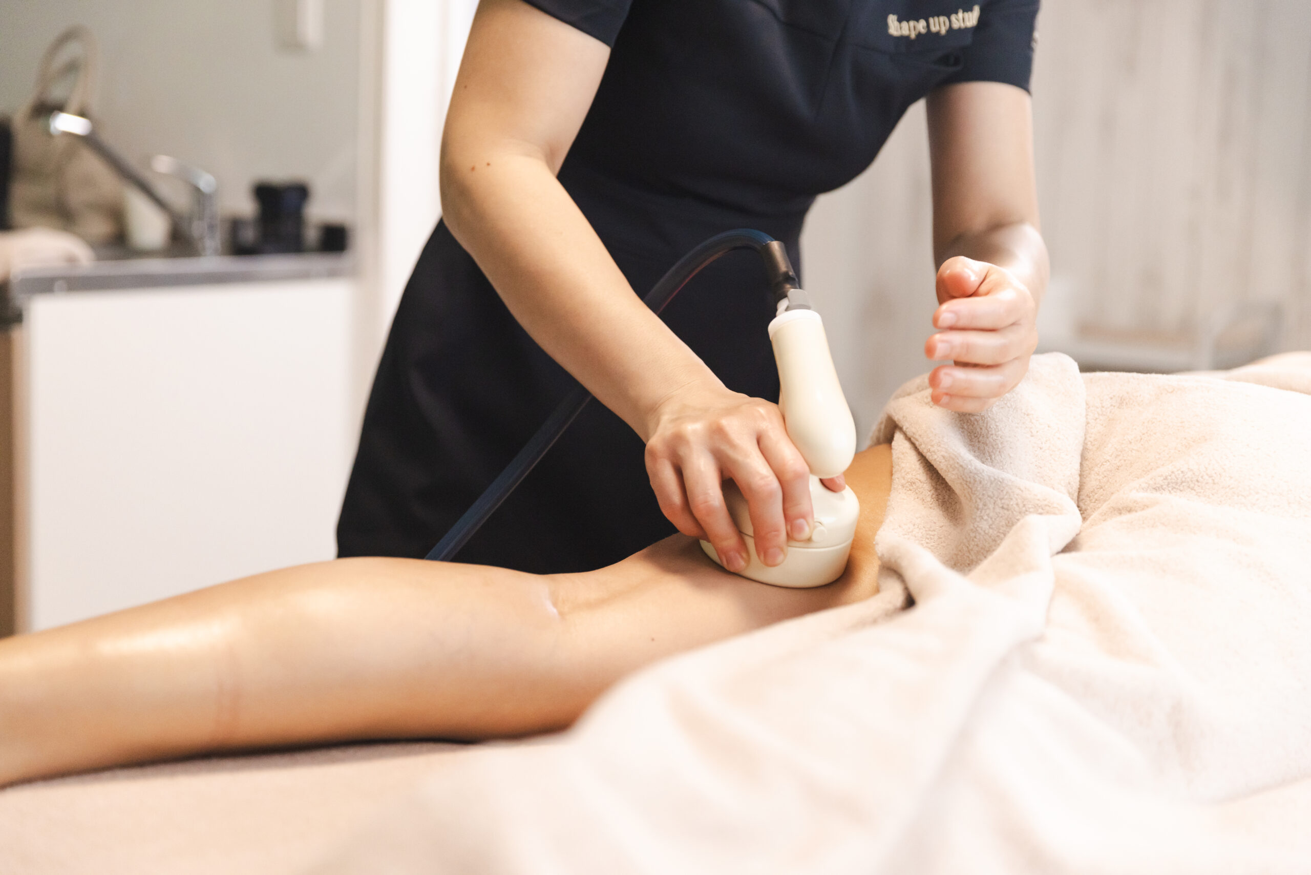 ハイパーシェイプは強力な吸引+巻き上げ+もみほぐしを同時に行い固まったセルライトをもみ出します。ハイパーシェイプを行う前にハイパーナイフEXで脂肪を柔らかくし、老廃物を流れやすい体に整えてからつぶしを行うため、より一層セルライトを分解しやすくするようにしました。ハイパーシェイプを使うことでセルライトをつぶすだけでなく、肌表面に見える凹凸まで整えることが可能になりました。